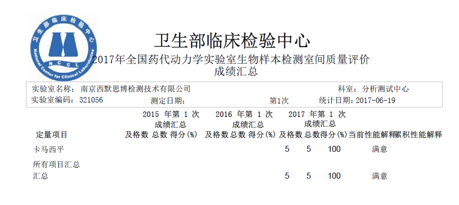 2017年6月20日,華威醫(yī)藥集團(tuán)全資子公司南京西默思博檢測(cè)技術(shù)有限公司以滿分的成績(jī)通過(guò)2017年全國(guó)藥代動(dòng)力學(xué)實(shí)驗(yàn)室生物樣本檢測(cè)室間質(zhì)量評(píng)價(jià),該評(píng)價(jià)是由衛(wèi)生部臨床檢驗(yàn)中心組織實(shí)施,用于驗(yàn)證實(shí)驗(yàn)室對(duì)于生物樣本檢測(cè)能力,是公認(rèn)的實(shí)驗(yàn)室檢測(cè)質(zhì)量認(rèn)可的重要依據(jù)。西默思博擁有先進(jìn)的分析測(cè)試設(shè)備和專(zhuān)業(yè)的技術(shù)人員,以質(zhì)量求生存,以“科學(xué)、嚴(yán)謹(jǐn)、求是、卓越”的態(tài)度,提供規(guī)范、優(yōu)質(zhì)、高效的醫(yī)藥科研檢測(cè)技術(shù)服務(wù)。本次滿分通過(guò)彰顯我單位具有專(zhuān)業(yè)可靠的檢測(cè)實(shí)力。