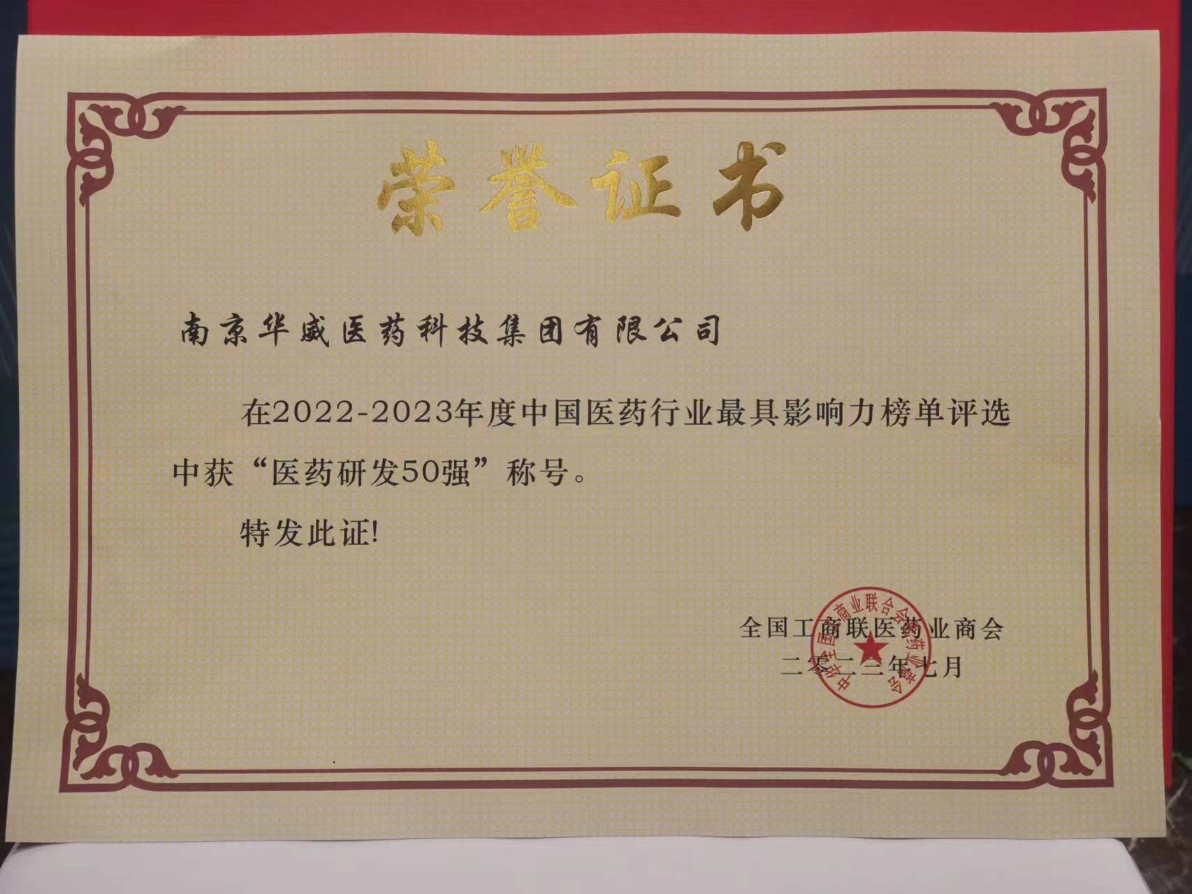 2023年7月4日,由全國工商聯(lián)醫(yī)藥業(yè)商會(huì)、黑龍江省工商聯(lián)、黑龍江省發(fā)改委共同主辦的“2022-2023年度中國醫(yī)藥行業(yè)最具影響力榜單發(fā)布會(huì)第十五屆中國醫(yī)藥產(chǎn)業(yè)發(fā)展高峰論壇”正式發(fā)布了——“2022-2023年度中國醫(yī)藥行業(yè)最具影響力榜單”,華威醫(yī)藥憑借自身雄厚實(shí)力再次榮耀入選“中國醫(yī)藥研發(fā)50強(qiáng)企業(yè)“。